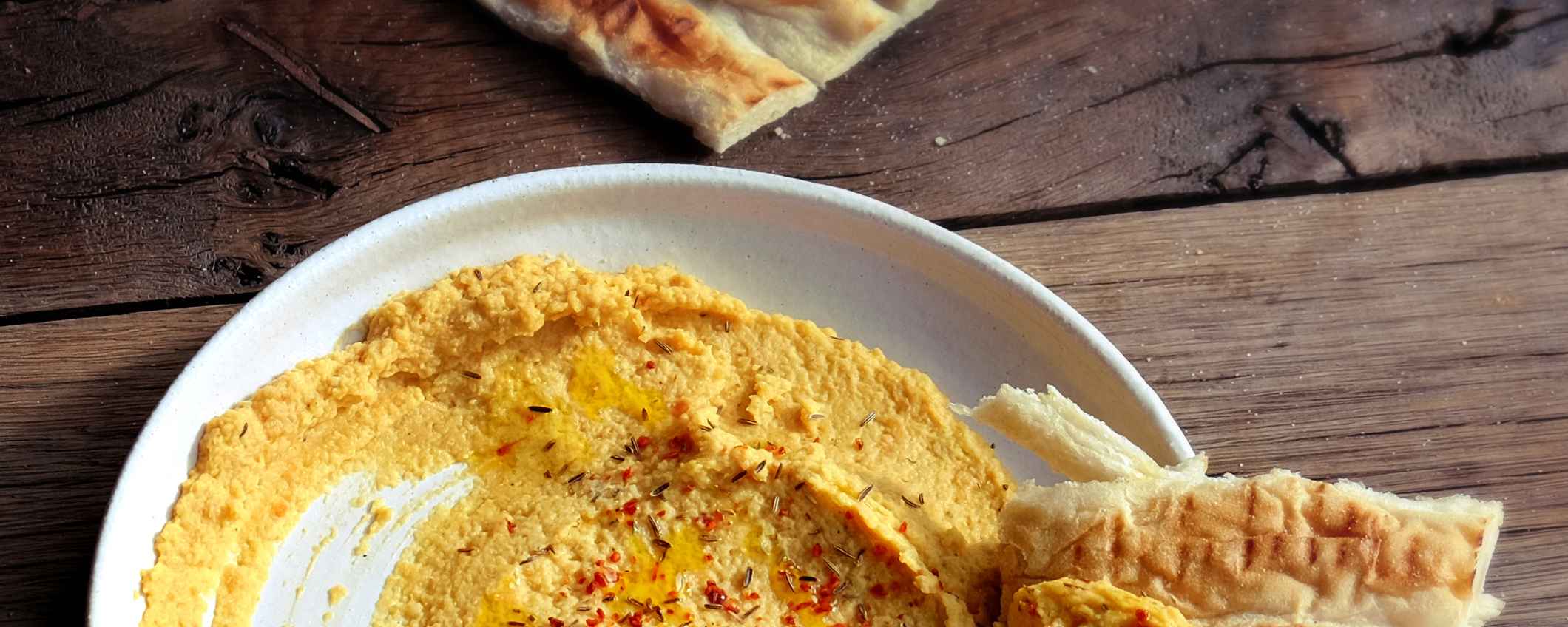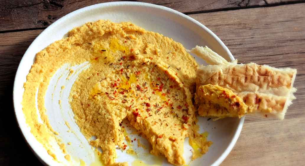 1. In a food processor, whiz the chickpeas, roots, lemon juice, tahini or yoghurt, oil, garlic, cumin and chilli flakes together until fairly smooth. If it’s too thick, thin with some hot water until you get the consistency you like. Season to taste with salt and pepper.