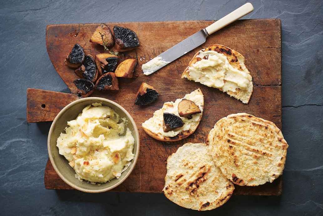 This is a great snack or starter, served with crudités or warm flatbreads, or spooned into toasted pittas with salad and/or some shredded cold meat. Use whatever leftover roast roots are to hand, and if you have some roast onions or garlic, chuck those in too.