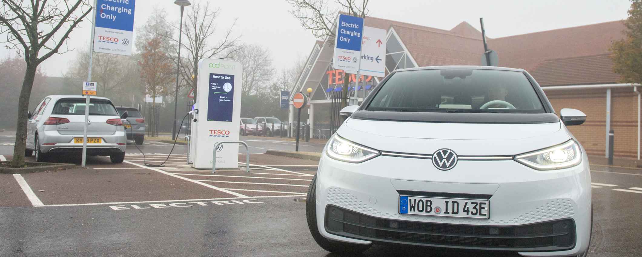 In partnership with Tesco and Volkswagen, hundreds of EV charge points are being supplied, operated and maintained by Pod Point at 600 Tesco stores. The new points will include 7kW media chargers with display advertising on a screen, from which customers can charge for free. Some sites will also have 50kW rapid chargers priced in line with market rates.